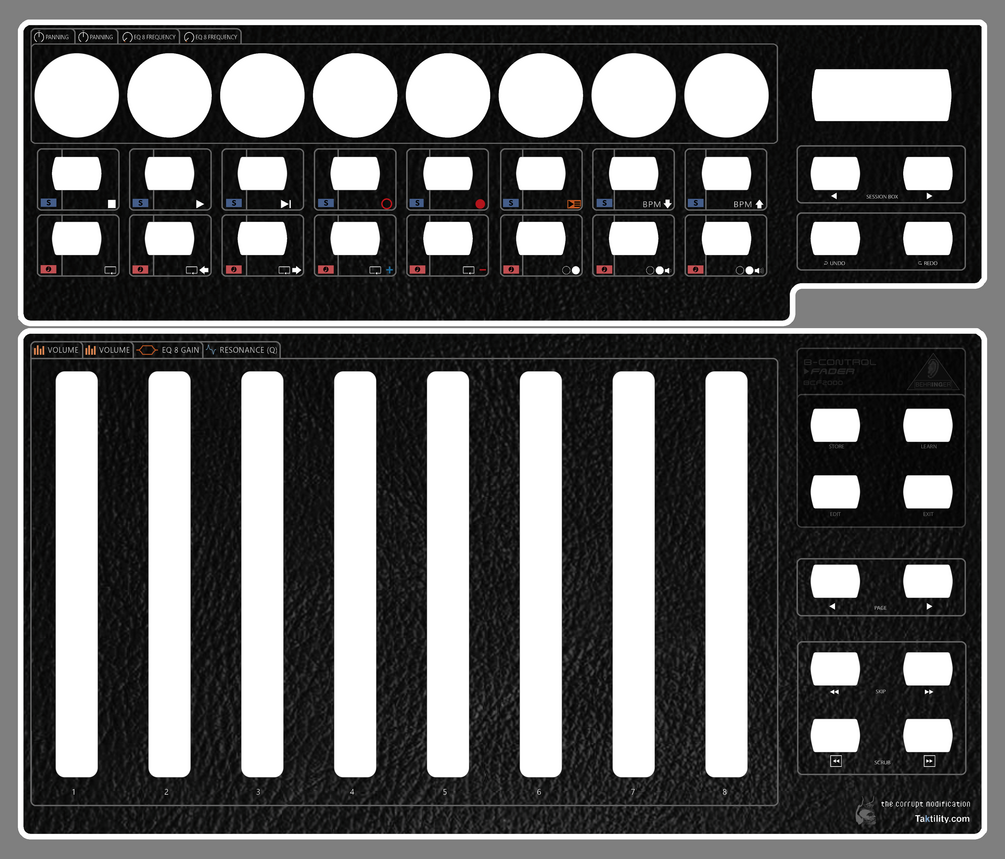 The main magic of this MIDI Remote Script is the session box mapping. -Faders, buttons, and knobs apply to the session box, enabling the device to control the 8 tracks, and move left or right one track at a time. With the session box showing the outline in Ableton, you can easily determine which fader each track is mapped to.